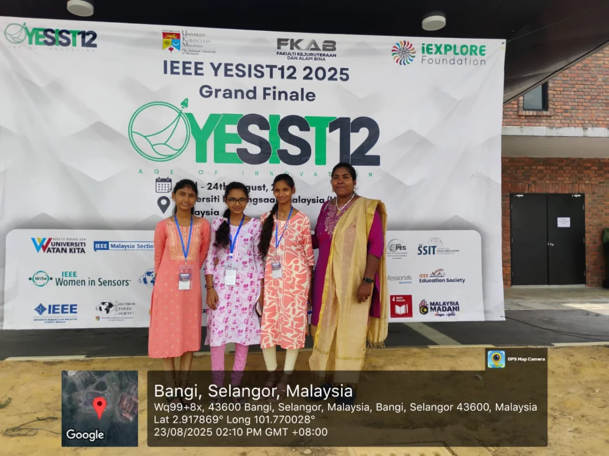 మలేషియాలోని యూనివర్సిటీ కాంగ్సాన్ మలేషియా (UKM) లో నిర్వహించిన IEEE YESIST12-2025 (Innovation Challenge Track – Direct Entry) పోటీలో మలినేని విద్యార్థినిల బృందం విశేష ప్రతిభ కనబర్చింది. "మల్టీ మోడల్ ట్రాన్స్లేషన్ ప్లాట్ఫాం" అనే వినూత్న ప్రాజెక్ట్తో పాల్గొన్న వీరు, అంతర్జాతీయ స్థాయిలో రెండవ ర్యాంక్ సాధించి కాలేజీకి గౌరవాన్ని తీసుకువచ్చారు.