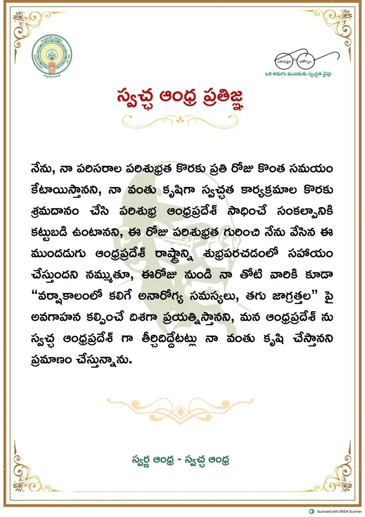 విద్యార్థులు, ఉపాధ్యాయులు, సిబ్బంది పరిశుభ్రత ప్రతిజ్ఞ చేయడం